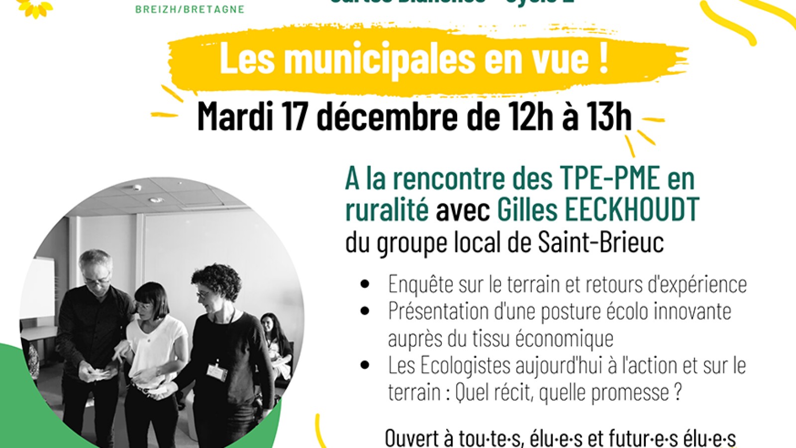 ► Les Ecologistes en Bretagne décident de monter en compétence tout-es celles-ceux qui souhaitent s’impliquer dans les élections municipales 2026.