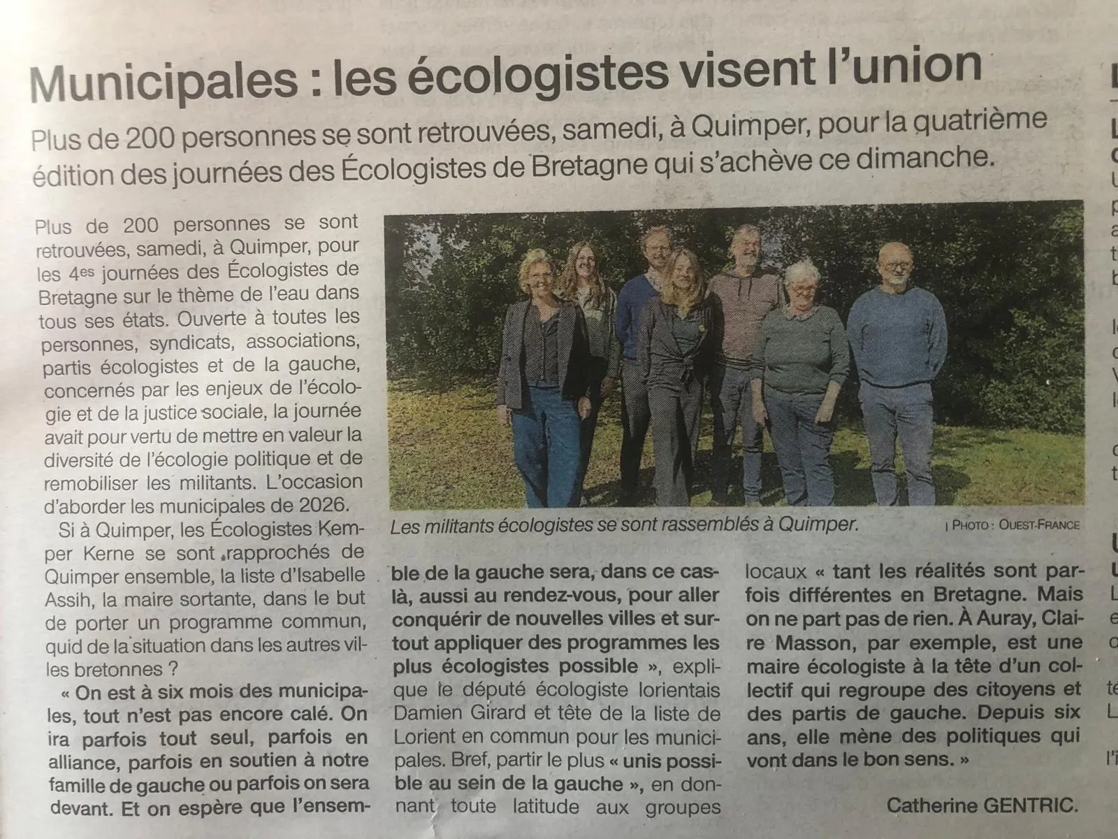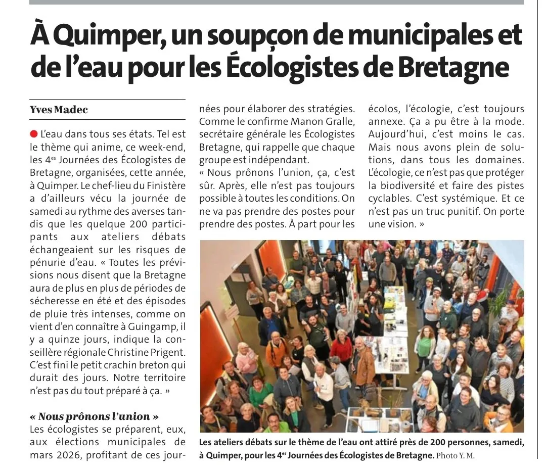 Pour leur quatrième édition, les Journées des écologistes de Bretagne se sont déroulées le week-end des 4 et 5 octobre à Quimper (29). Ces journées ont mis en valeur la diversité de l’écologie politique au niveau local et régional, avec une approche festive et familiale. Plusieurs député-es, sénateurs-trices écologistes et personnalités de la société civile engagées ont été invitées et sont venues partager leurs compétences et expériences de terrain.